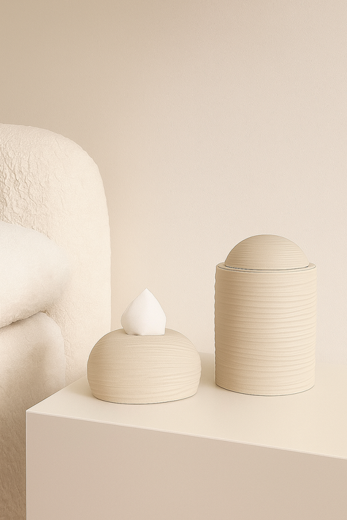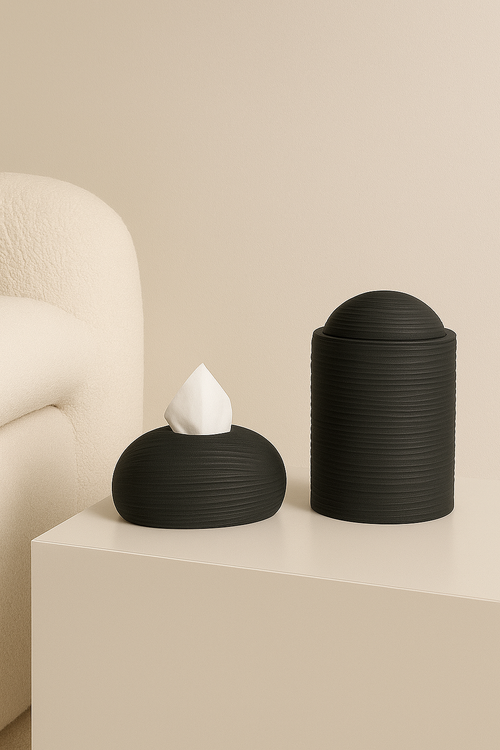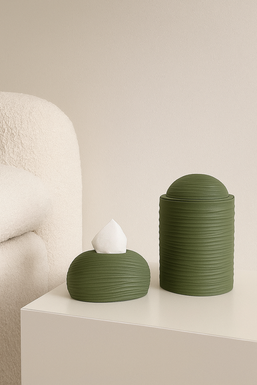 کاور دستمال خطی و سطل اشغال با درب متحرک جنس کار پلی استر بسیار شیک و جذاب برای دیزاین منزل . اتاق خواب